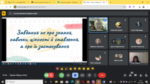 Експерт курсу «НУШ: Базова середня освіта», автор підручників з біології, Заслужений вчитель України, кандидат біологічних наук Руслан Шаламов ознайомив учасників тренінгу з науковими підходами щодо створення компетентнісно-орієнтованих завдань, їх принциповими відмінностями та складовими. Методист ХОІППО ім. А. Назаренка Лілія Мирна акцентувала увагу на методичних підходах використання компетентнісно-орієнтованих завдань в освітньому процесі з біології.