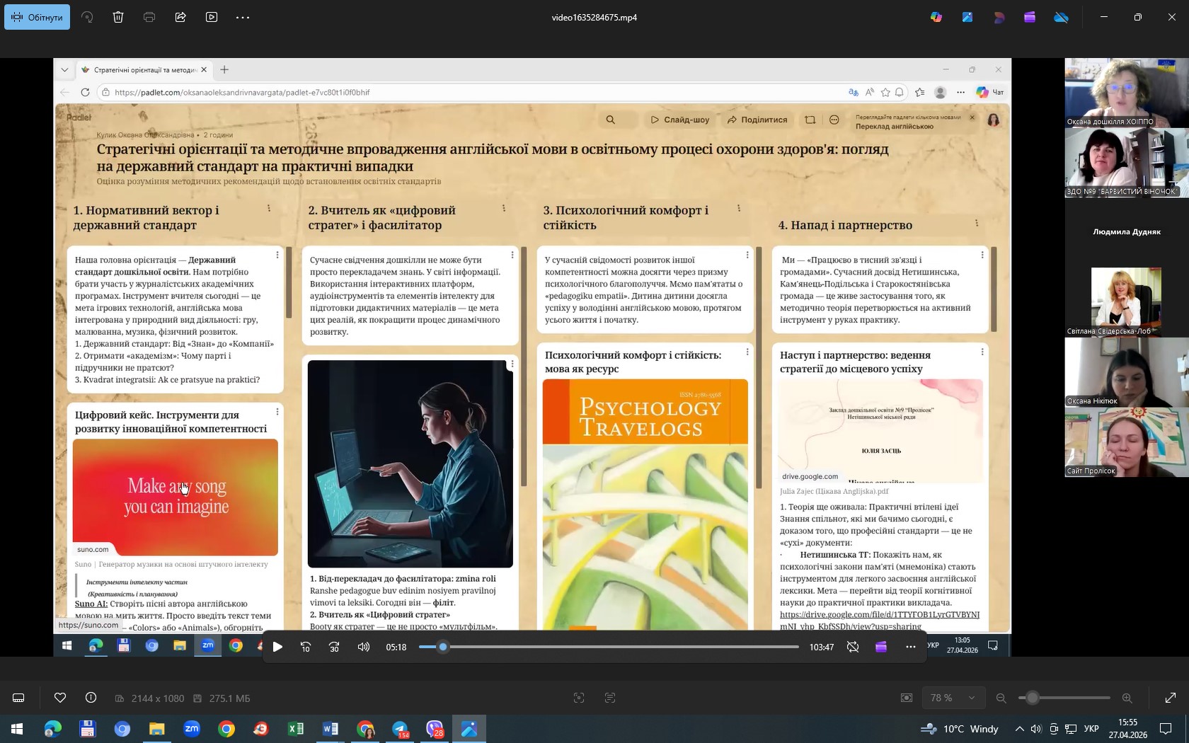 - Юлія Заєць (Нетішинська ТГ, ЗДО №9 «Пролісок») презентувала можливості мнемотехніки для легкого засвоєння іншомовної лексики.