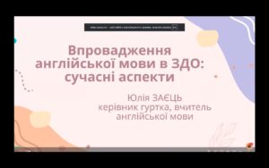 Захід об’єднав фахівців дошкілля області навколо стратегічних питань впровадження англійської мови в освітній процес згідно з Державним стандартом дошкільної освіти. Модератором вебінару виступила методист обласного дошкілля ХОІППО Оксана Кулик.