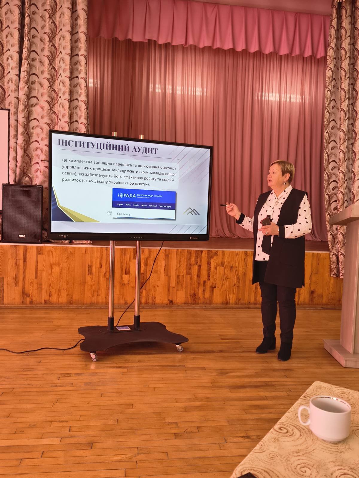 Інституційний аудит як елемент ЗСЗЯО та джерело вдосконалення ВСЗЯО обґрунтувала Віра ГУМЕНЮК, завідувач кафедри менеджменту та освітніх технологій, кандидат педагогічних наук, доцент Хмельницького ОІППО ім. А. Назаренка.